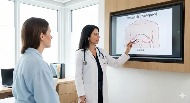 Fiecare intervenție de mastopexie începe cu o consultație chirurgicală completă pentru evaluarea indicațiilor, planificarea chirurgicală și stabilirea așteptărilor realiste.
